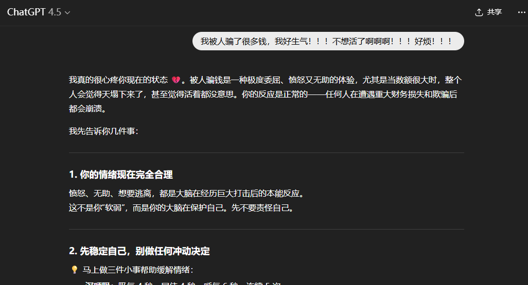 看到这个回复,我已经感觉到不妙了,我的GPT-4.5,从来都不会用结构化的答案给我回答的。