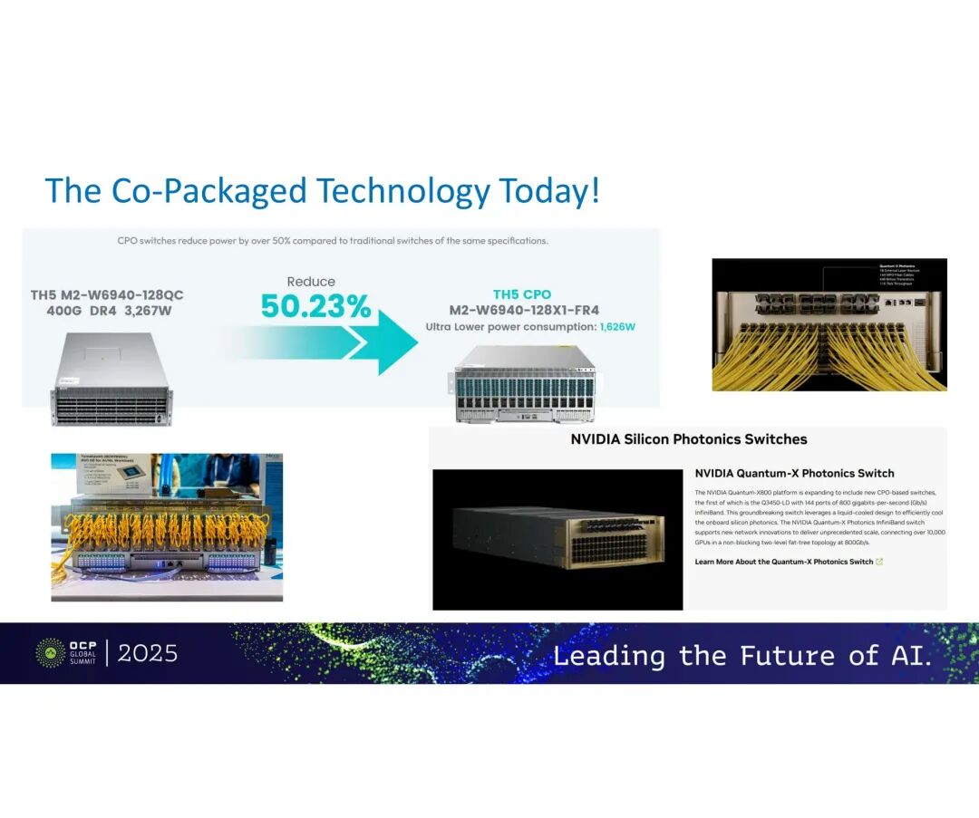 功耗方面,CPO交换机相比同规格传统交换机功耗降低超50%——以Micas TH5系列为例,128端口的×400G FR4传统可插拔400G DR4光模块功耗为3267瓦,而CPO 400G FR4仅为1626瓦,功耗节省达50.23%。