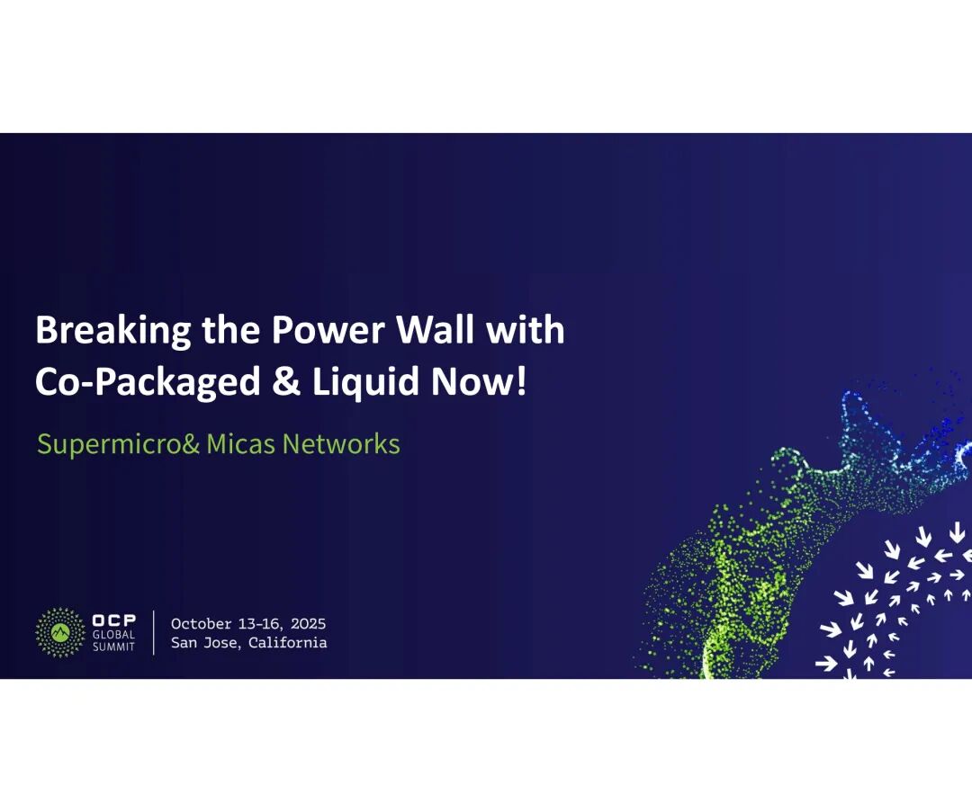 在OCP 2025全球峰会上,Micas Networks与Supermicro联合带来了题为“Breaking the Power Wall with Co-Packaged & Liquid Now!”的主题分享,聚焦AI数据中心面临的功耗与散热瓶颈,详解了共封装光学(CPO)与液冷技术的协同解决方案,为AI基础设施规模化部署提供了切实可行的路径。本次分享由Micas Networks的Kris Tsao主持,邀请到Micas Networks首席架构师Andrew Qu与Supermicro资深增长产品经理Johnson Eung,结合近三十年行业经验与实战案例,全方位拆解技术创新与落地价值。