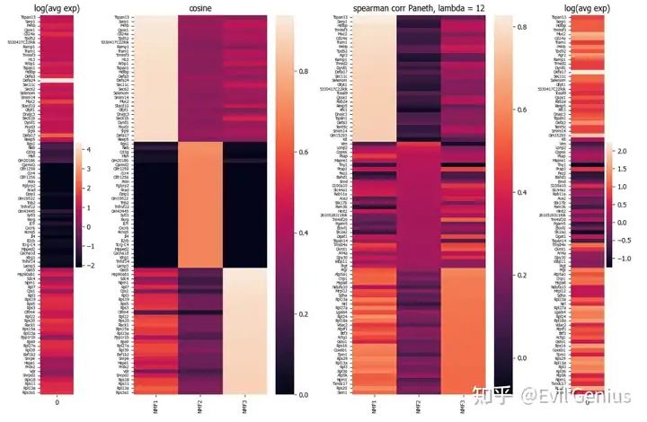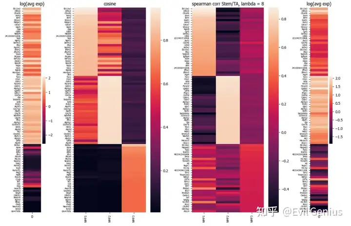 # Cosine and spearman correlation: visualize the correlation of genes from NMF