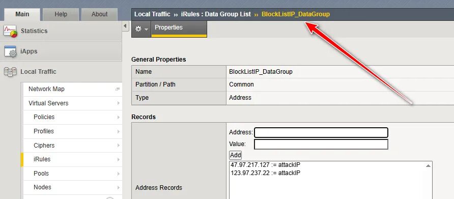 这样就只用在Data Group List添加攻击IP黑名单即可进行拦截