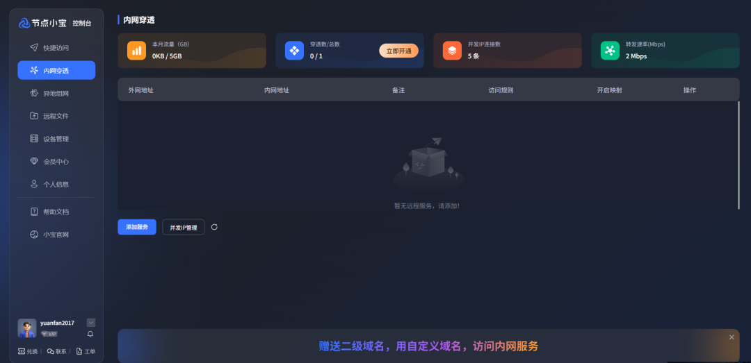 节点小宝是一款功能强大的远程管理工具,满足您绝大部分的远程访问需求。