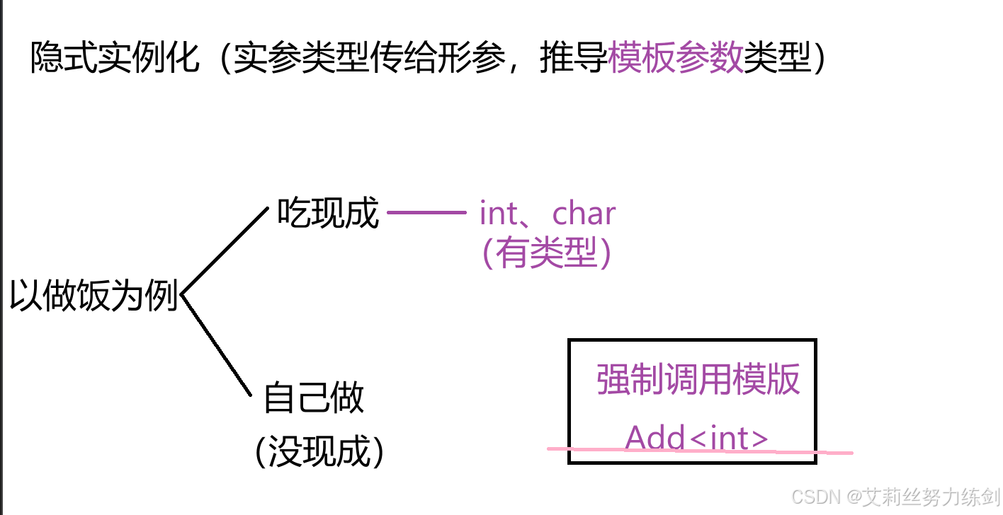 用不同类型的参数使用函数模板时,称为函数模板的实例化。模板参数实例化分为:隐式实例化