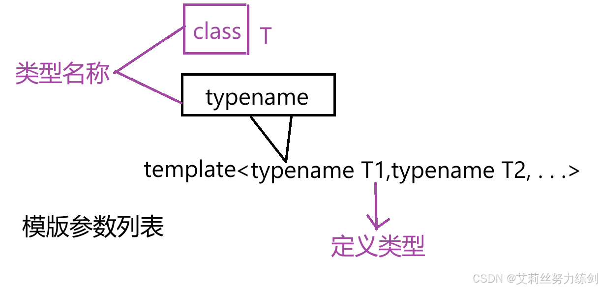 }注意:typename是用来定义模板参数关键字,也可以使用class(切记:不能使用struct代替 class)