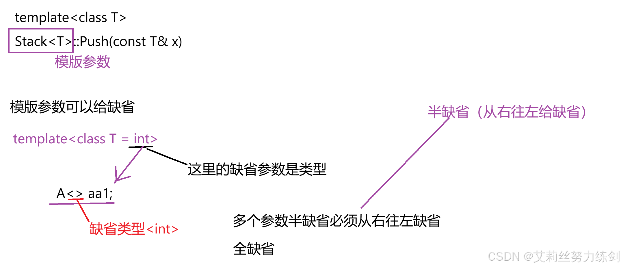 }类模板实例化与函数模板实例化不同,类模板实例化需要在类模板名字后跟<>,然后将实例化的 类型放在<>中即可,类模板名字不是真正的类,而实例化的结果才是真正的类。