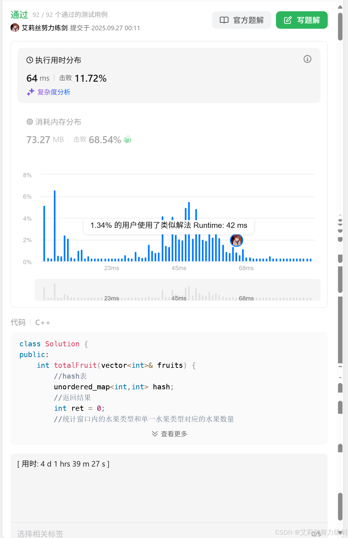 这里虽然时间复杂度良好,但是这种写法频繁地在hash表插入/删除一个元素,虽然时间复杂度是O(N),但是还是比较耗时的。