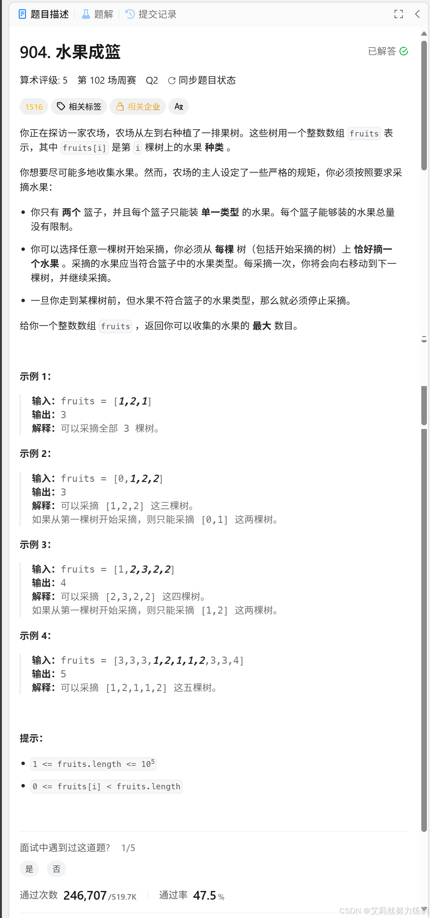 力扣链接:904. 水果成篮