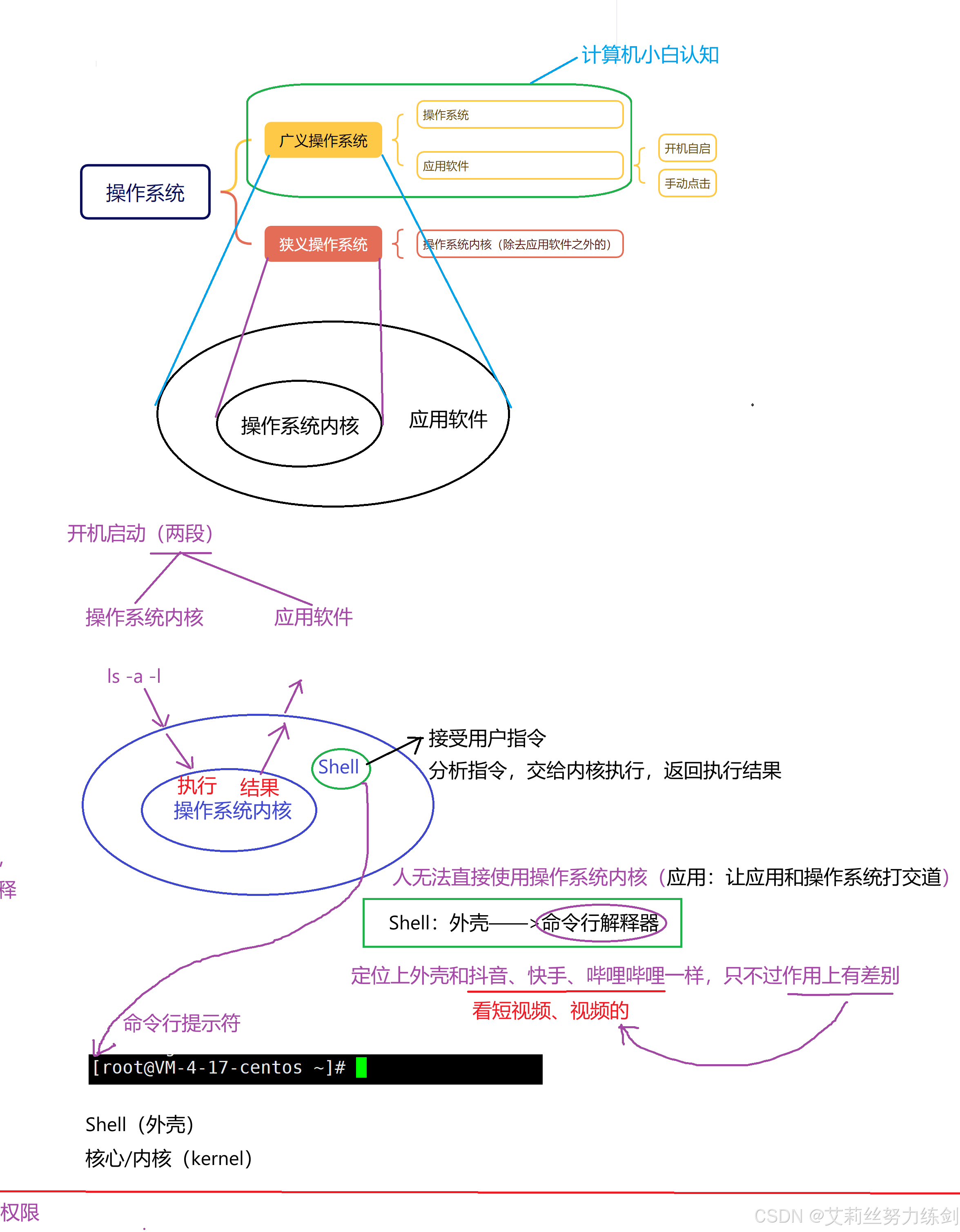 如果说你是一个闷骚且害羞的程序员,那shell就像媒婆,操作系统内核就是你们村头漂亮的且有让你心动的MM小美。你看上了小美,但是有不好意思直接表白,那就让你你家人找媒婆帮你提亲,所有的事情你都直接跟媒婆沟通,由媒婆转达你的意思给小美,而我们找到媒婆姓王,所以我们叫它王婆,它对应我们常使用的bash。