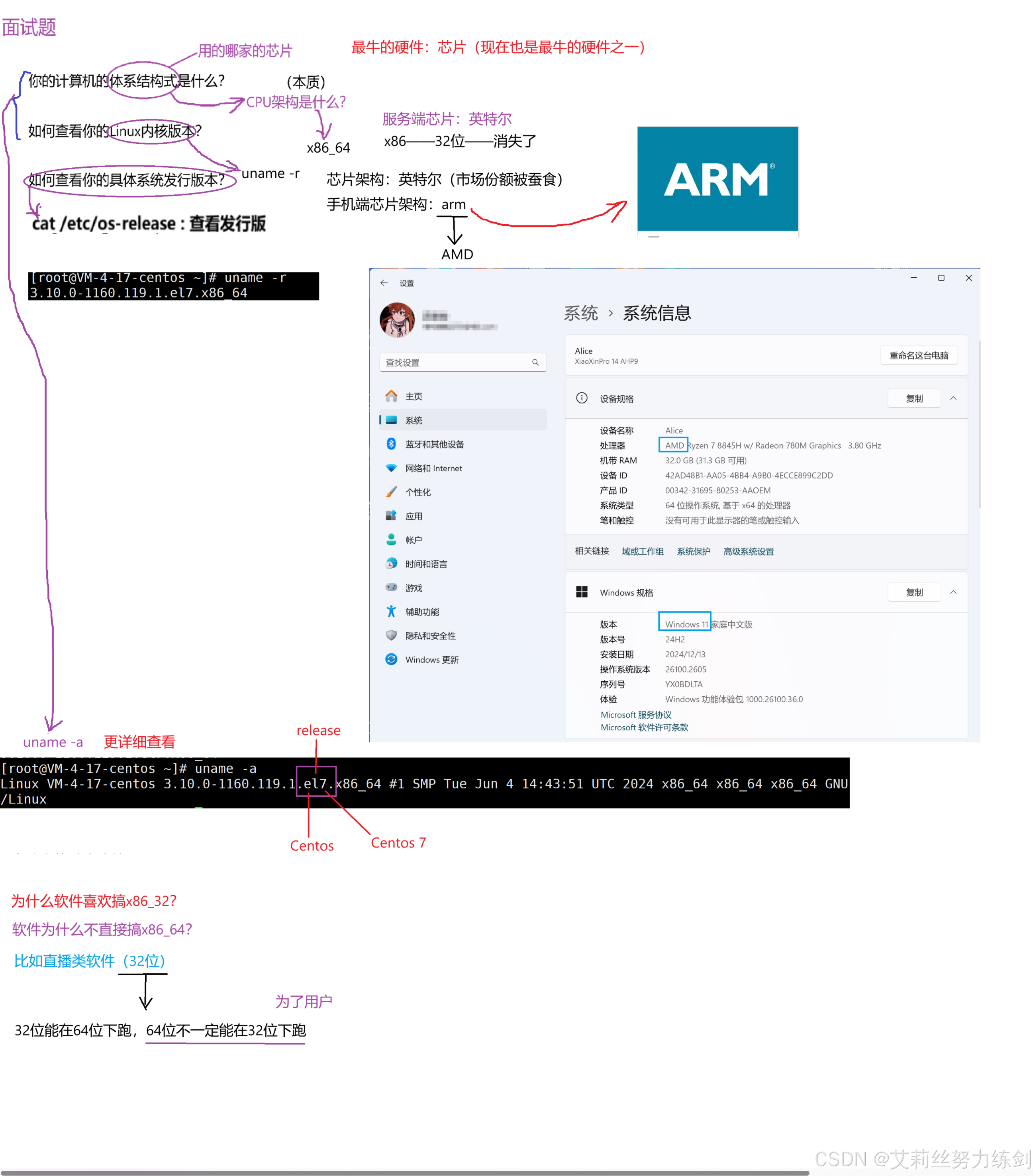 你的计算机的体系结构式是什么? 如何查看你的Linux内核版本? 如何查看你的具体系统发行版本?