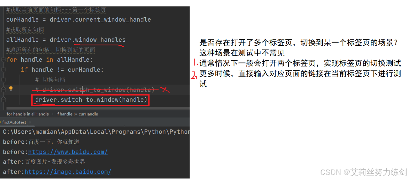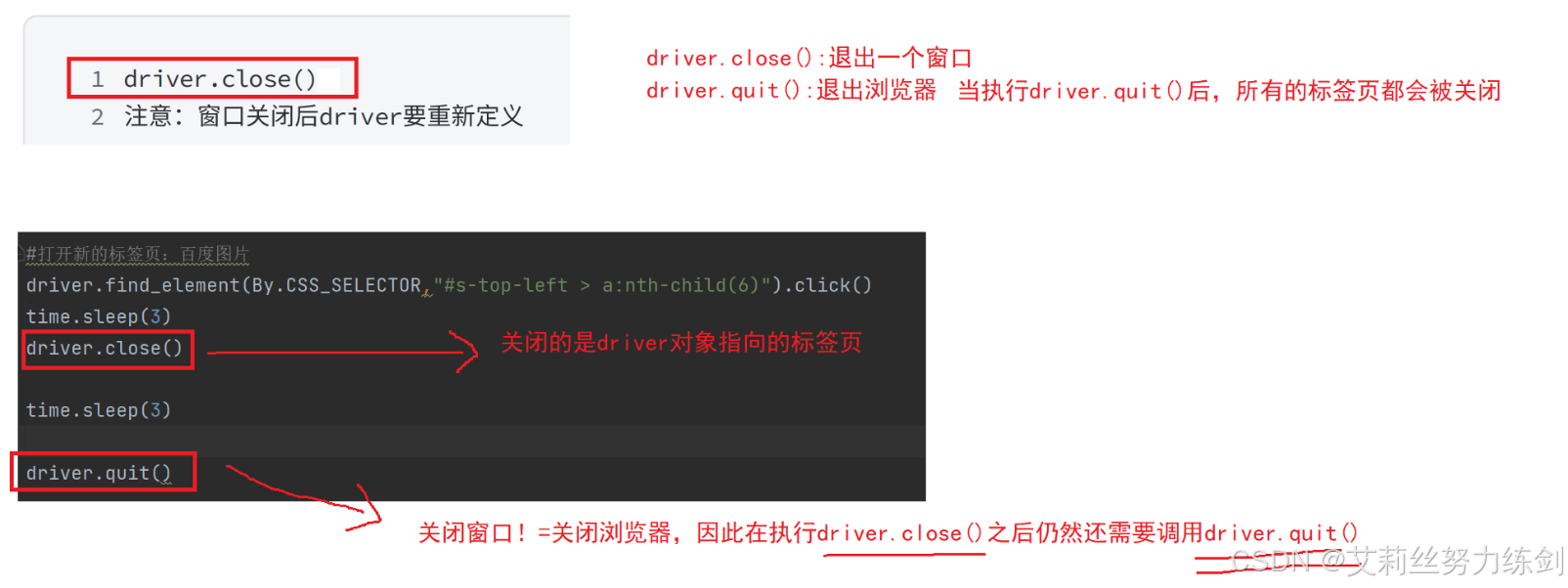 driver.switch_to.window(window)注意:执行了driver.close()之前需要切换到未被关闭的窗口。