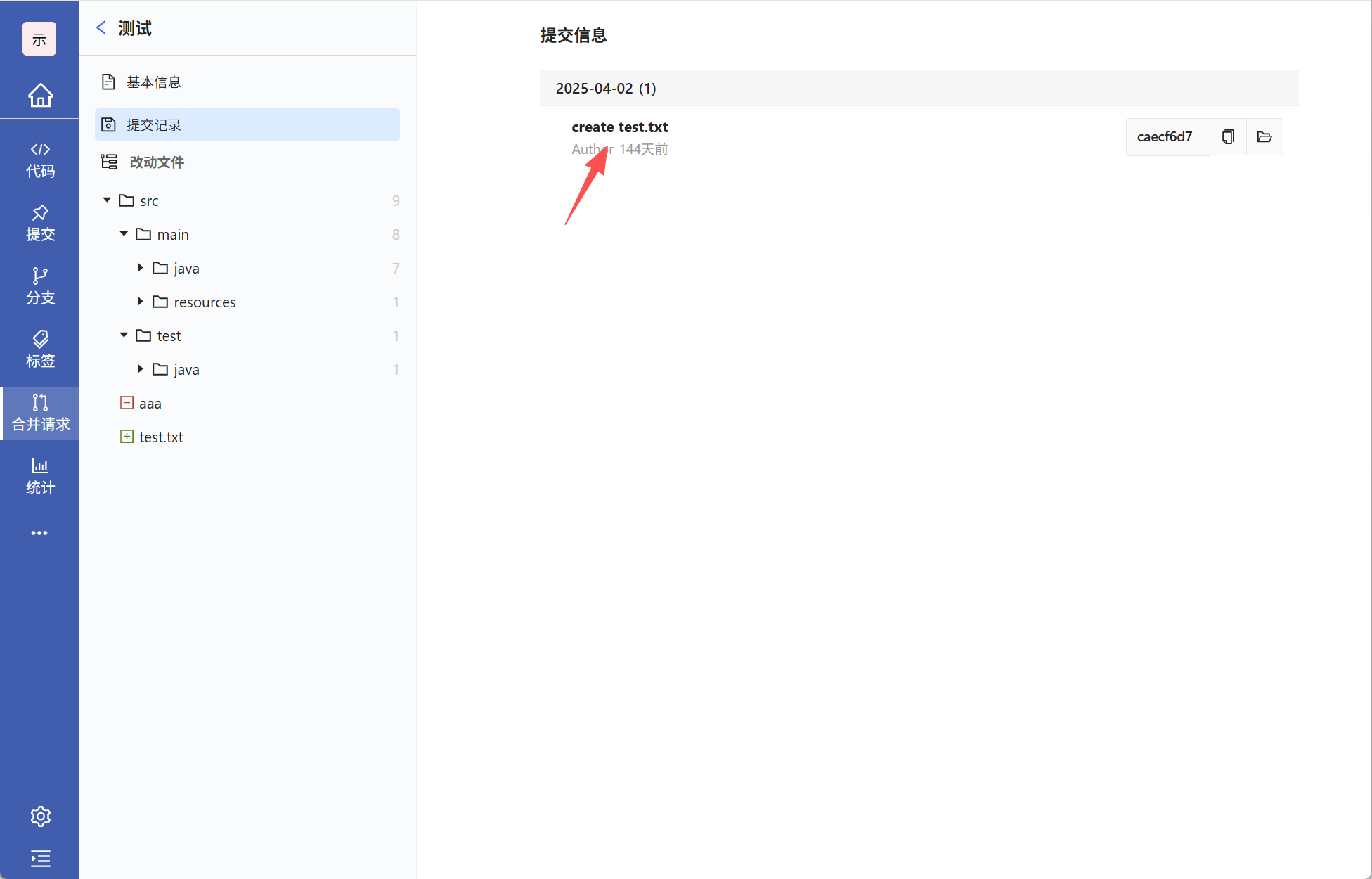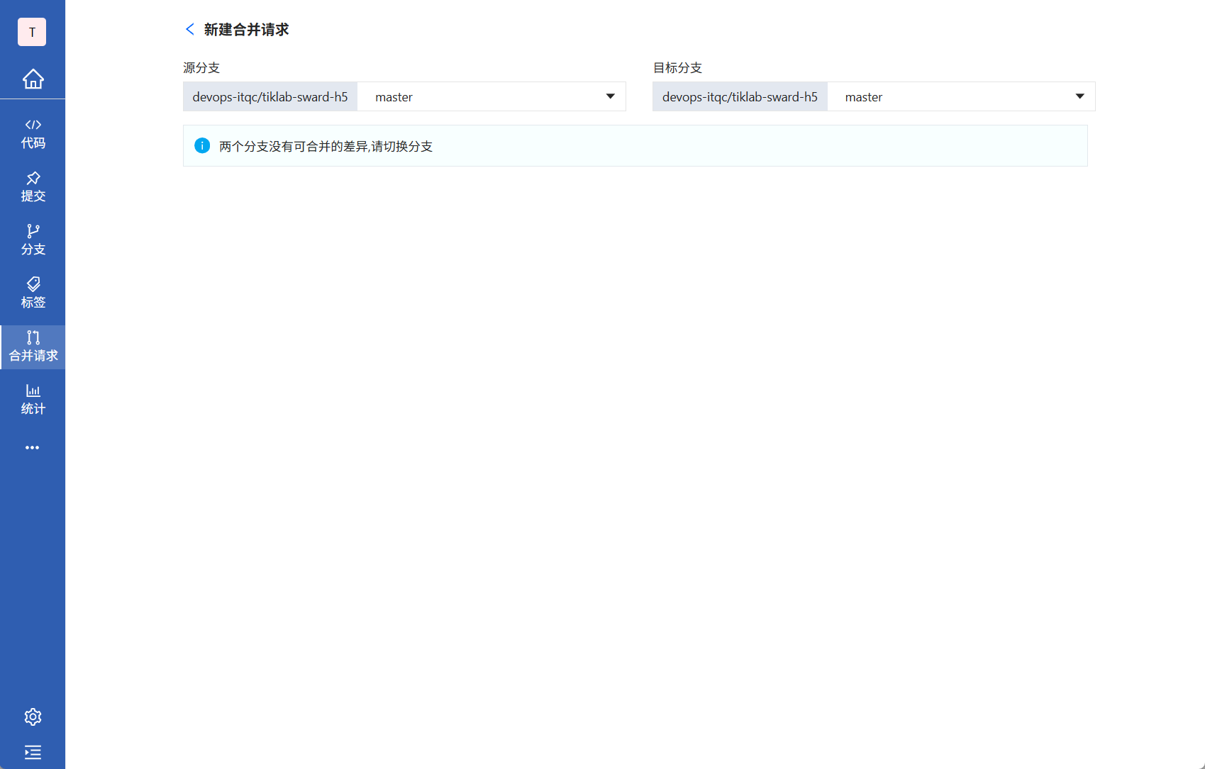 2.选择的源分支和目标分支提交有差异才会显示基础信息、提交记录、文件改动