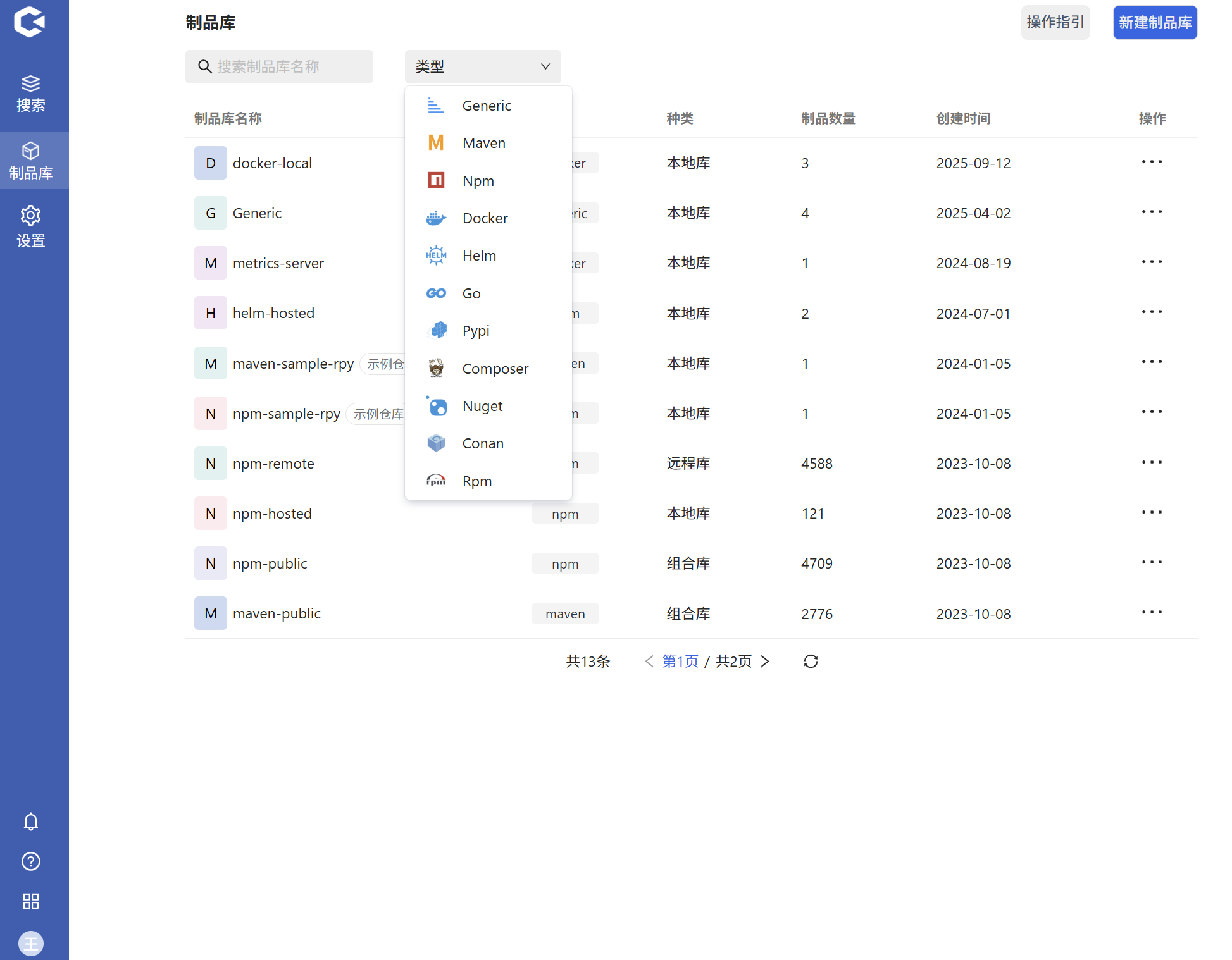 进入Hadess后点击制品库,在上方选择制品类型也可直接在搜索框输入制品库名称进行搜索