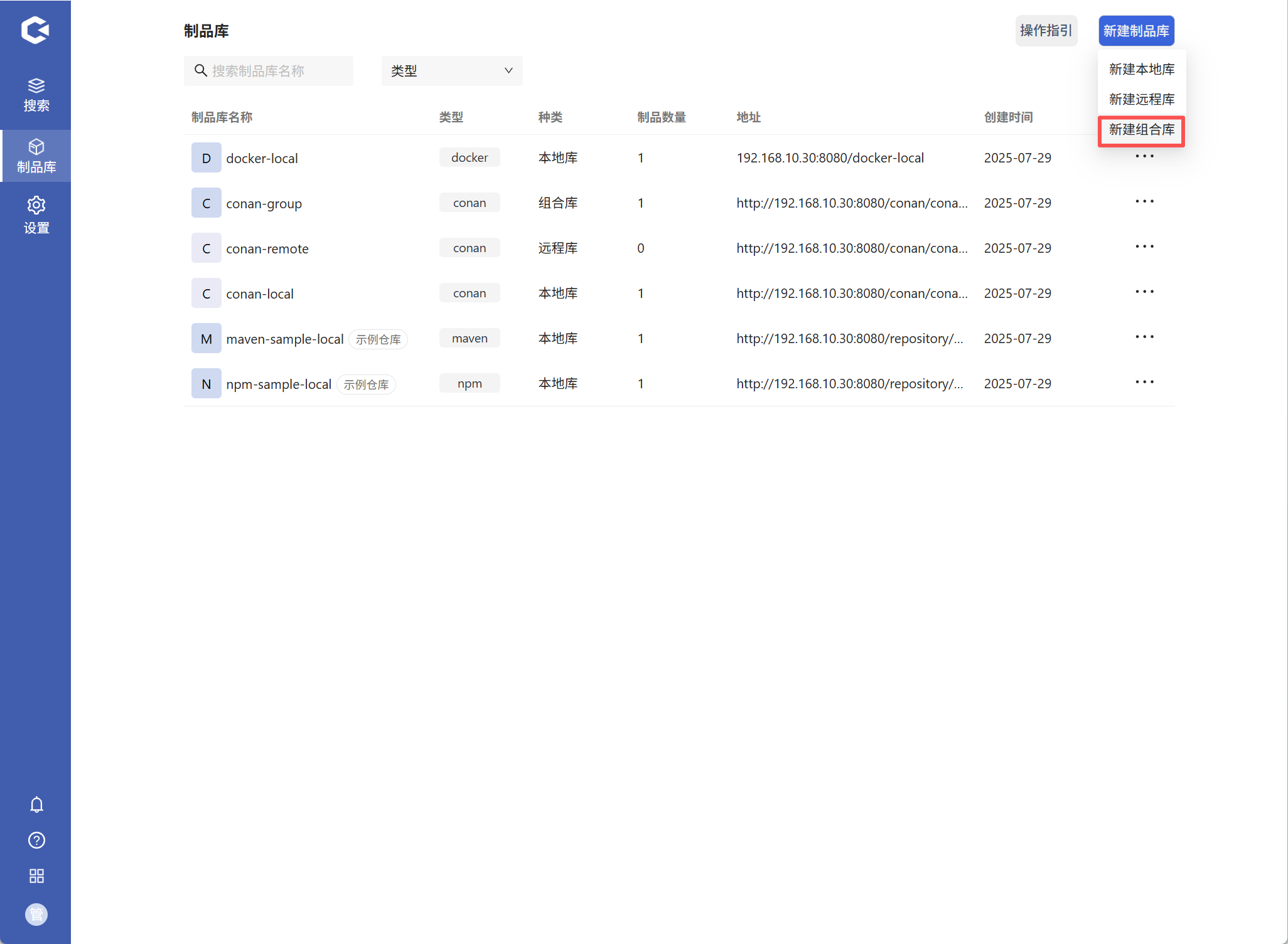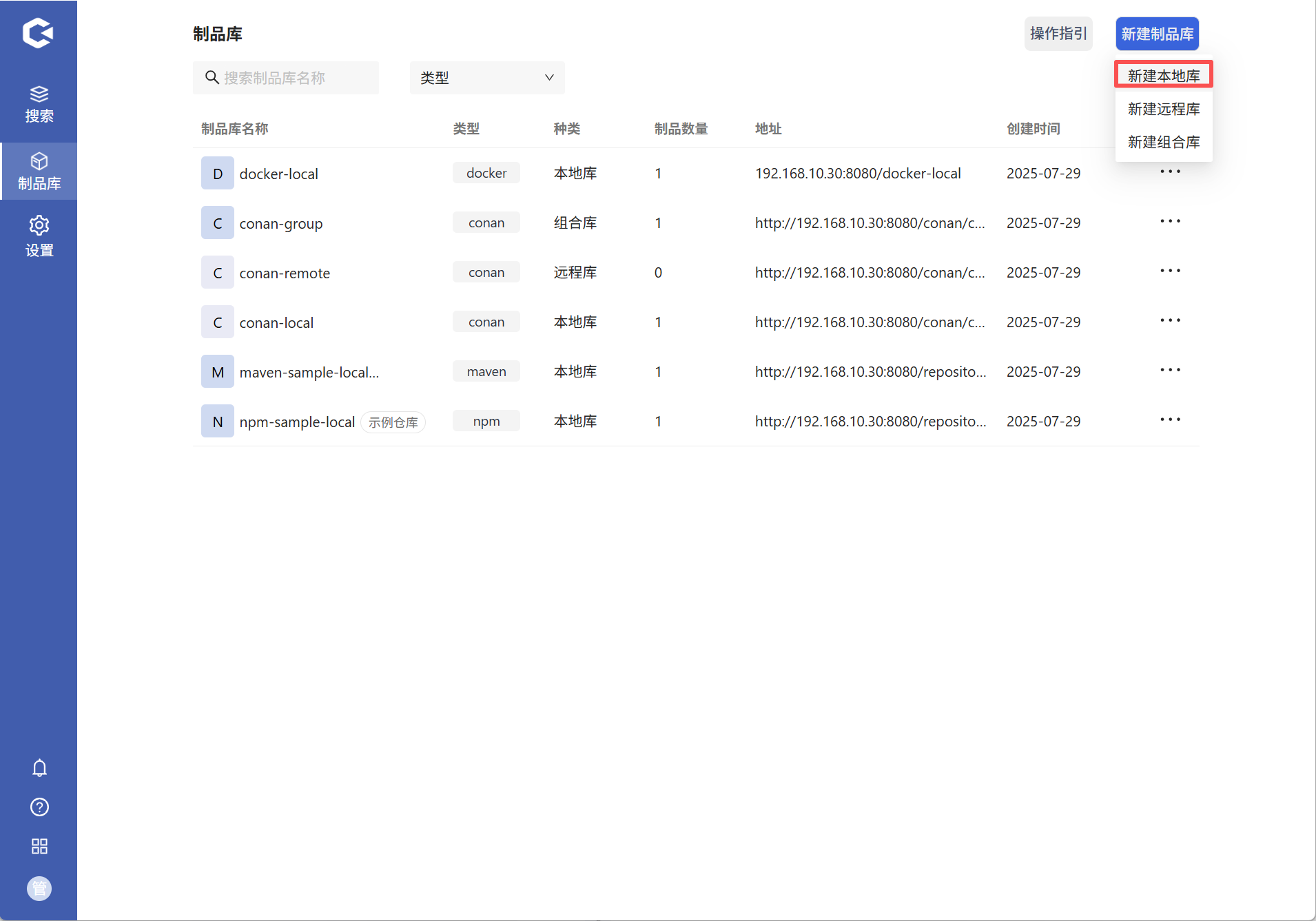 进入Hadess后点击制品库,可在上方制品类型中选择也可直接在搜索框中输入制品库名称进行查询