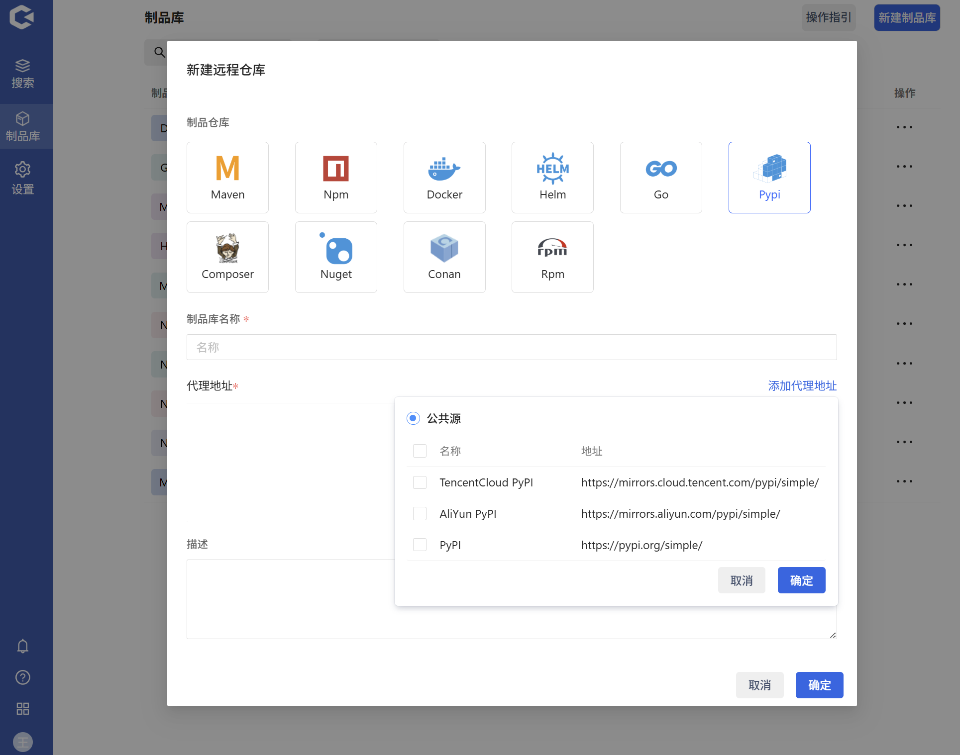 代理地址:点击添加代理地址,打开公共源弹窗。选择地址后点击确定即可