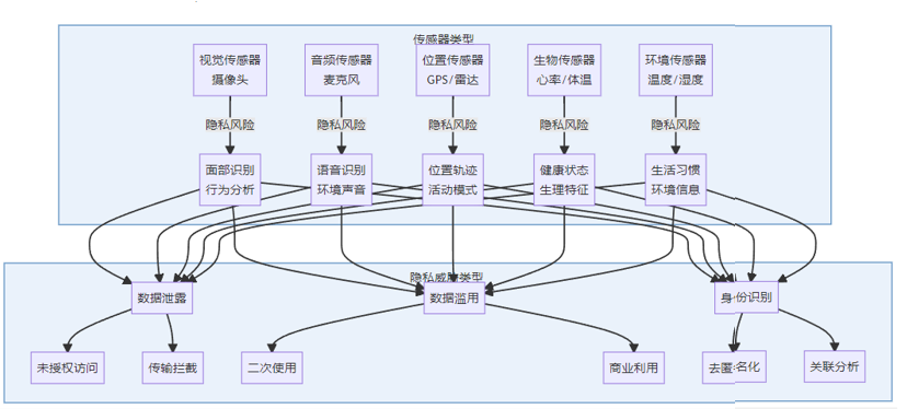 具身AI系统通过多种传感器收集数据,形成复杂的隐私风险矩阵: