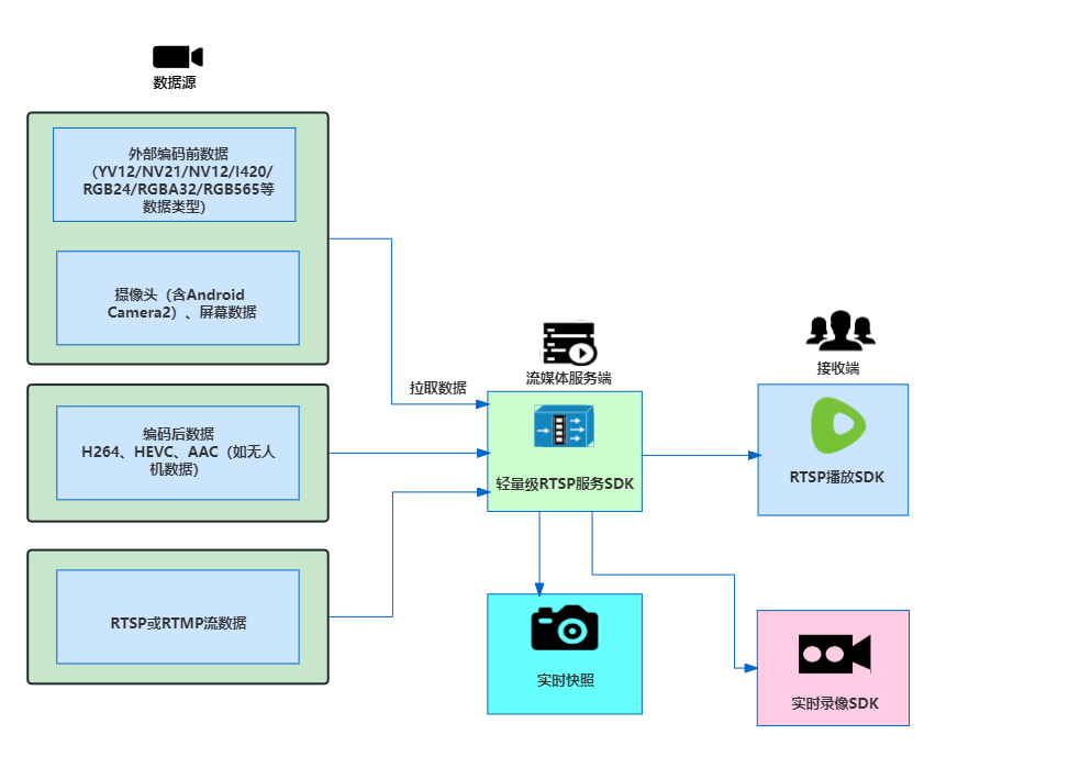 简单来说,之前推送端SDK支持的功能,内置轻量级RTSP服务SDK后,功能继续支持,并实现了从单一RTMP音视频数据推送到多元本地服务供给的关键跨越,全方位契合用户于内网场景下不断衍生的多样化诉求。