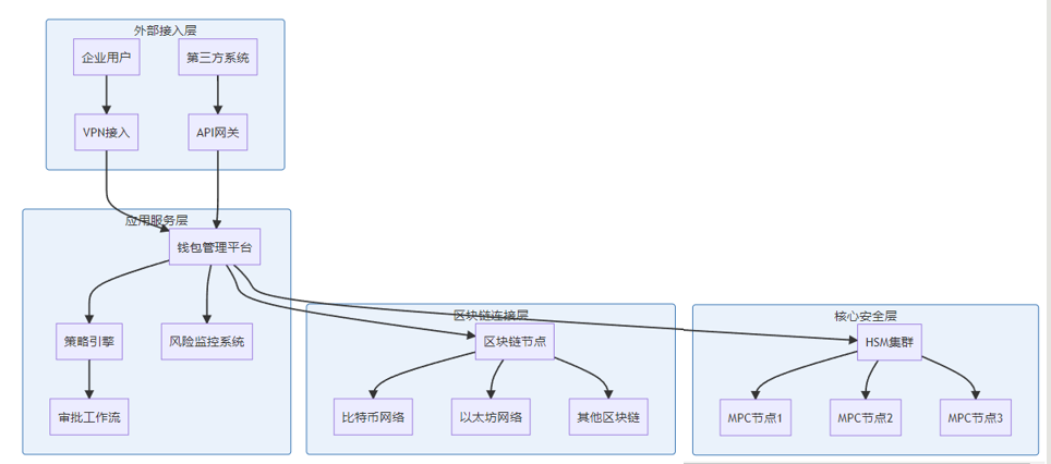 }企业级Web3钱包的部署架构需要考虑安全性、可用性、可扩展性和合规性等多个维度。一个典型的部署架构包括: