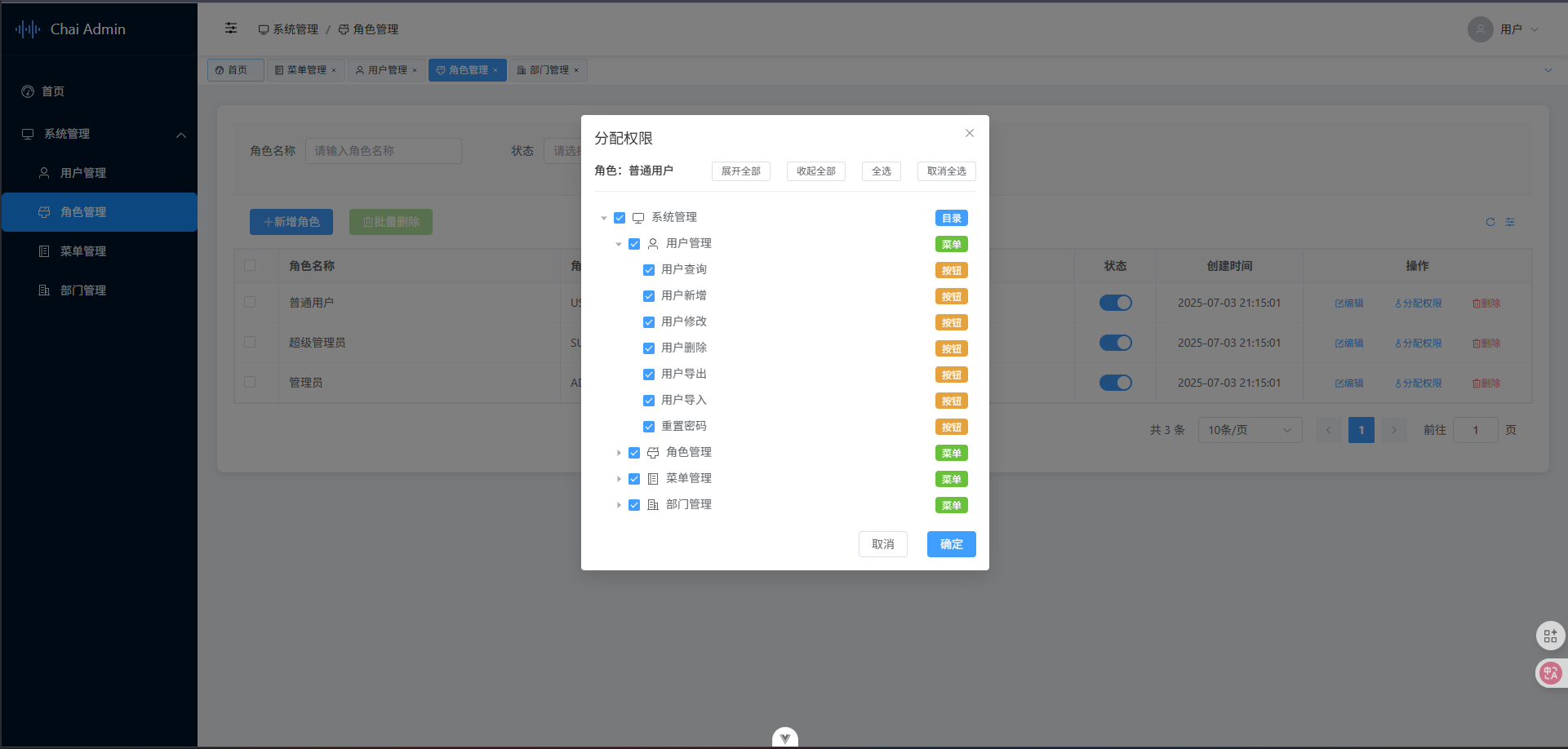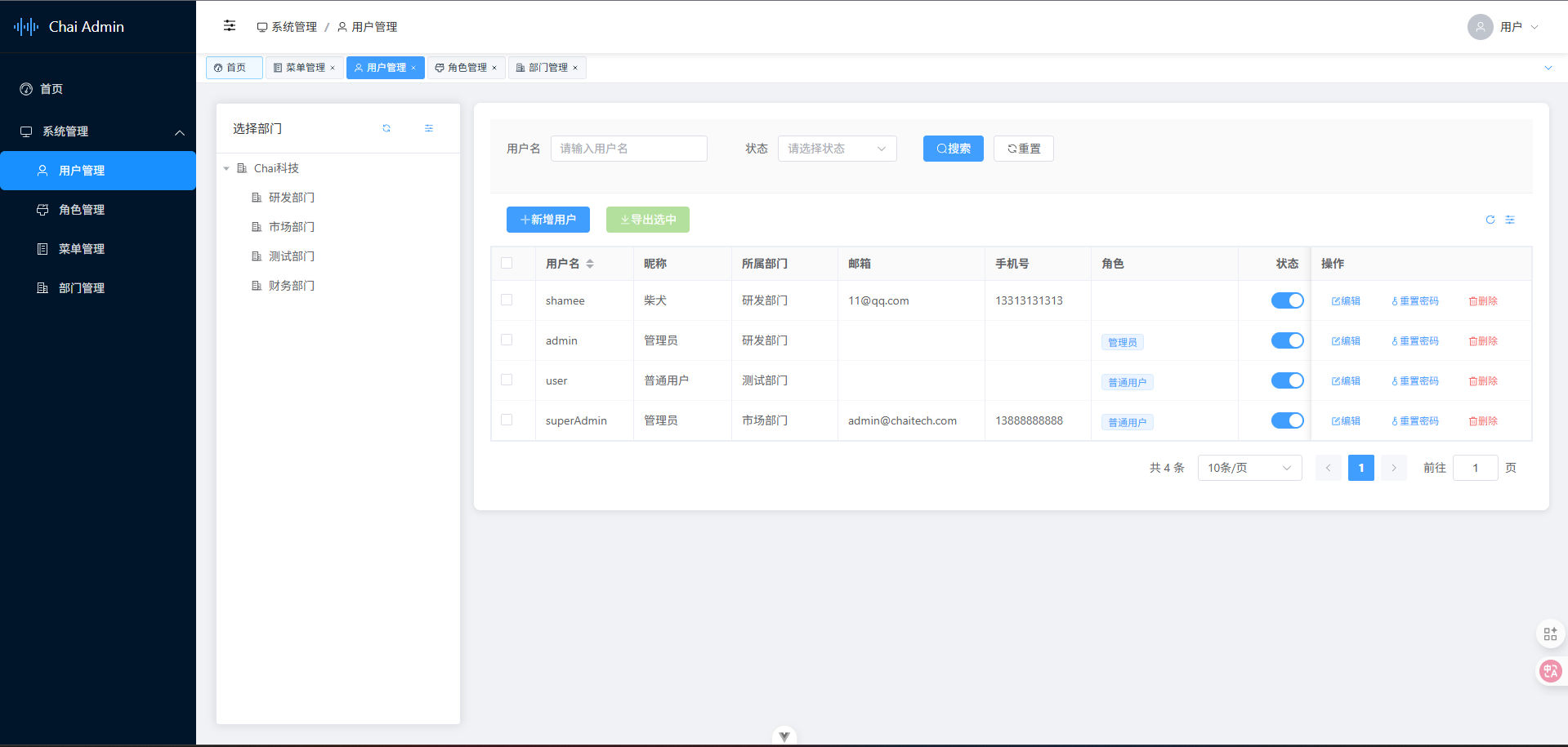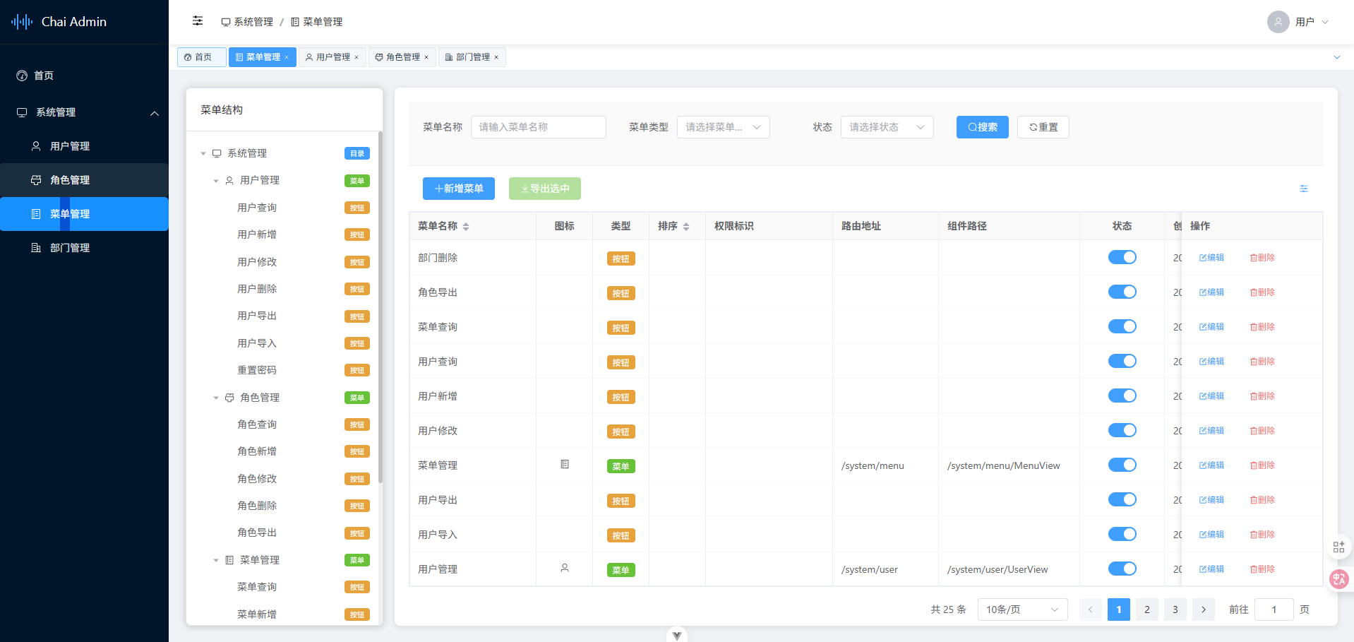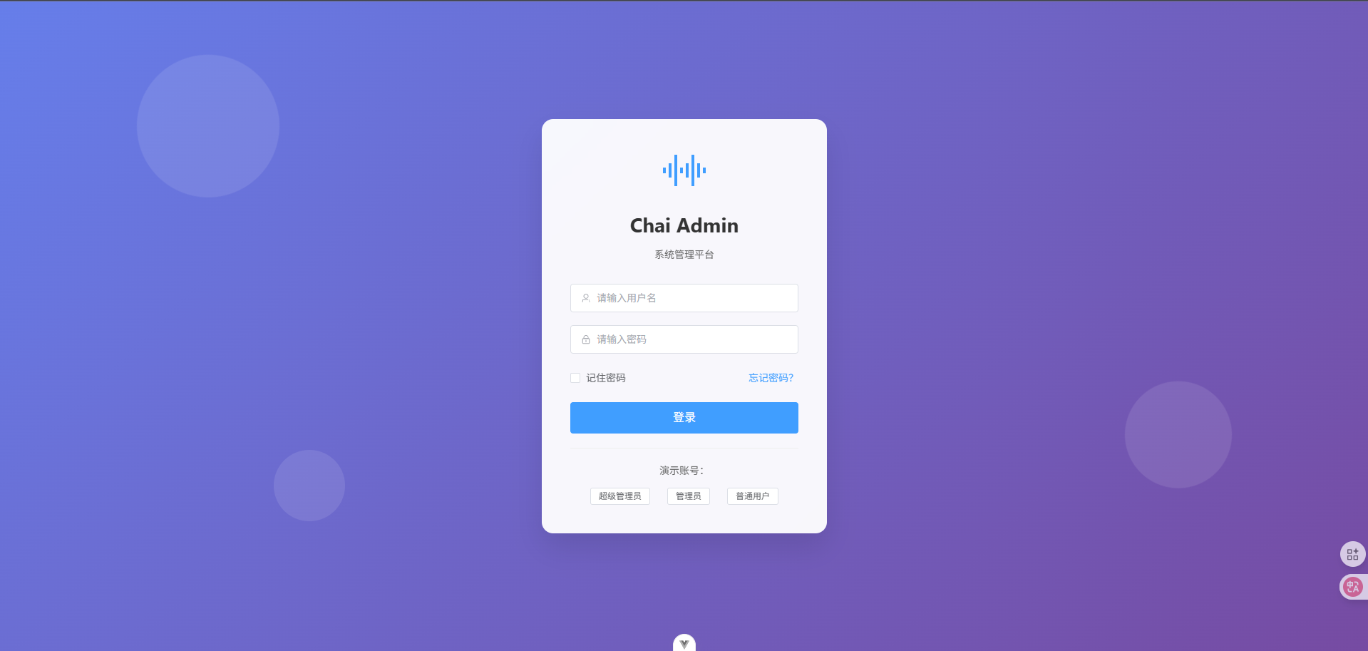 Chai Admin包含前端Chai-Vue3-Element和配套后端Chai-admin-service。