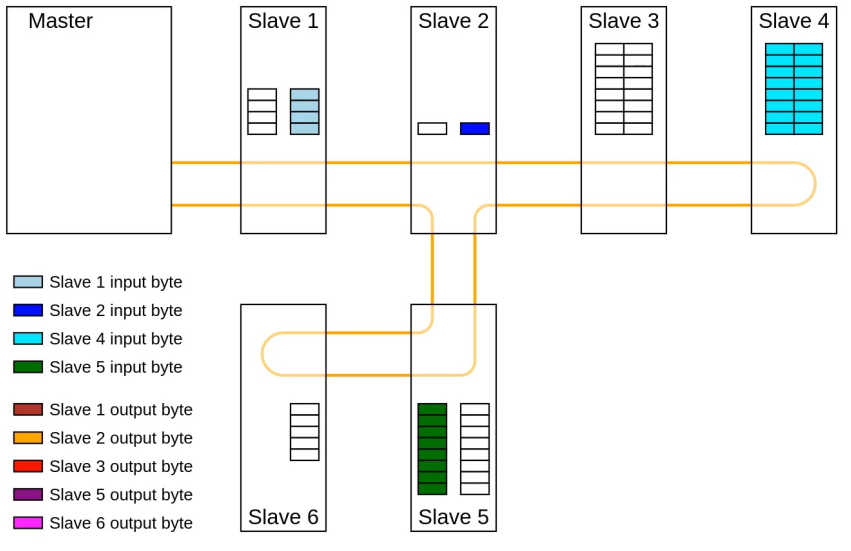 EtherCAT通信机制示意图,EtherCAT的“飞速帧”极大提升了效率