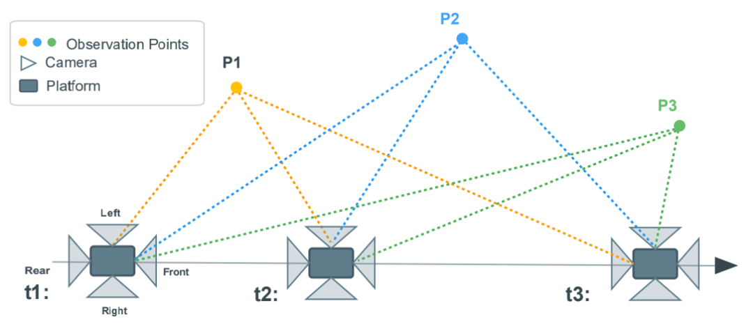 该方法的核心思想是:当一个图像块在某一相机中消失并在另一相机中重新出现时,只要满足可见性与时间连续性条件,就认为该图像块发生了跨视角迁移。为确保不同相机之间的光度一致性,系统对图像进行了曝光与暗角校正(Exposure and Vignetting Correction),从而使得跨相机的强度比较更加准确。