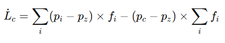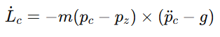 其中 p_c是重心位置,L_c是绕重心的角动量。通过加减ZMP位置 p_z使其显式出现: