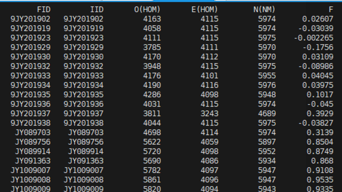 自然群体,做GWAS分析,可以对杂合度进行质控,认为群体的杂合度应该是合理区间,可以用三倍标准差的形式进行离群样本的质控,比如计算的F值,通过上面提供的函数,剔除样本。