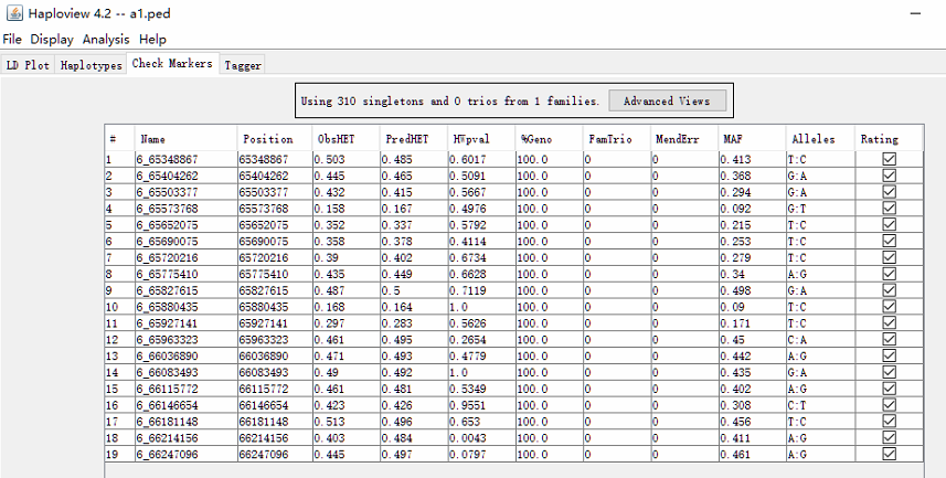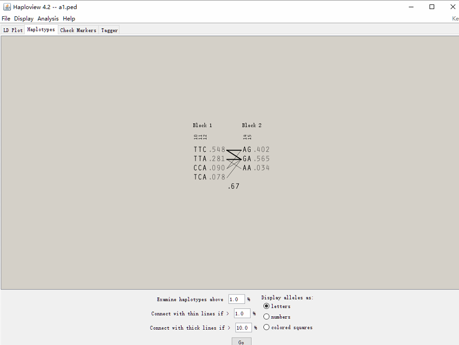 这里建议用下划线代替,搞定这些后,就可以用Haploview读取数据,进行单倍型分析了。