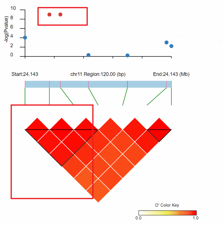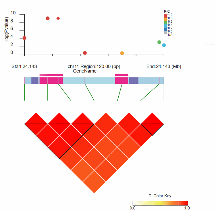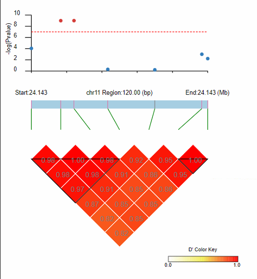 LDBlockShow-InVCFTest.vcf.gz-OutPutre2-Regionchr11:24100000:24200000-InGWASgwas.pvalue-OutPng-SeleVar 1结果: