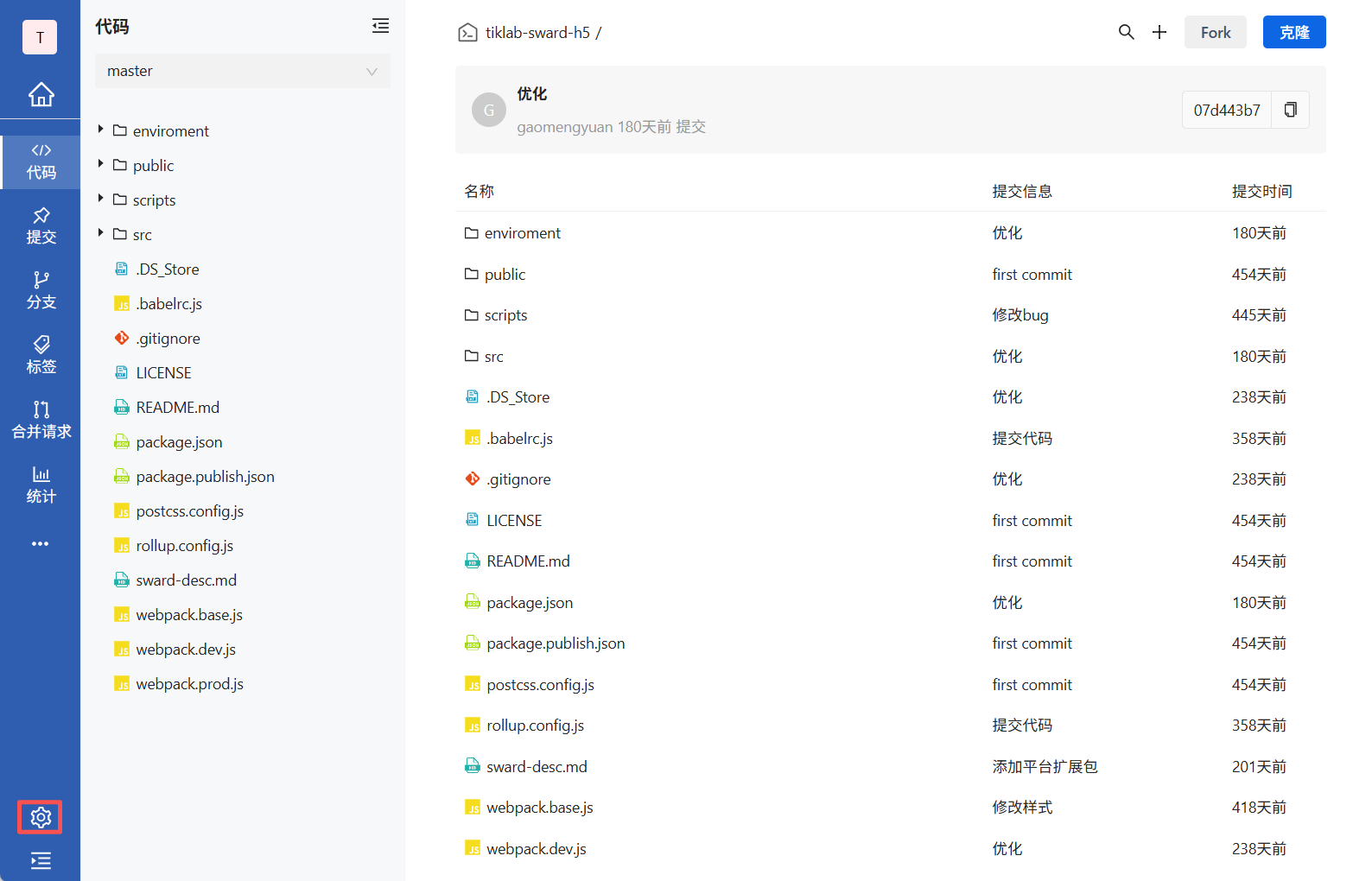 1,首先进入你所创建的代码库中,在左下角点击设置