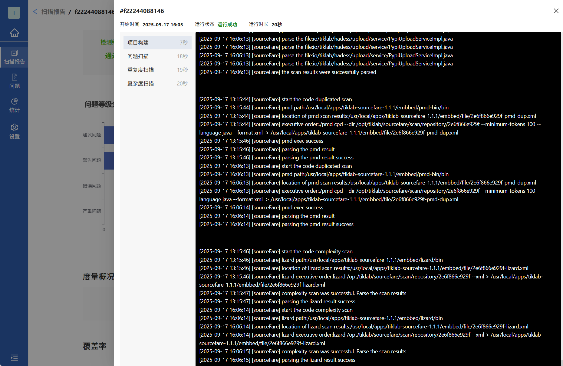 3,扫描后,可回到GitPuk中在代码扫描功能中点击关联扫描计划,关联后直接点击可查看当前代码扫描后的细节报告,也可直接在SourceFare中进行查看
