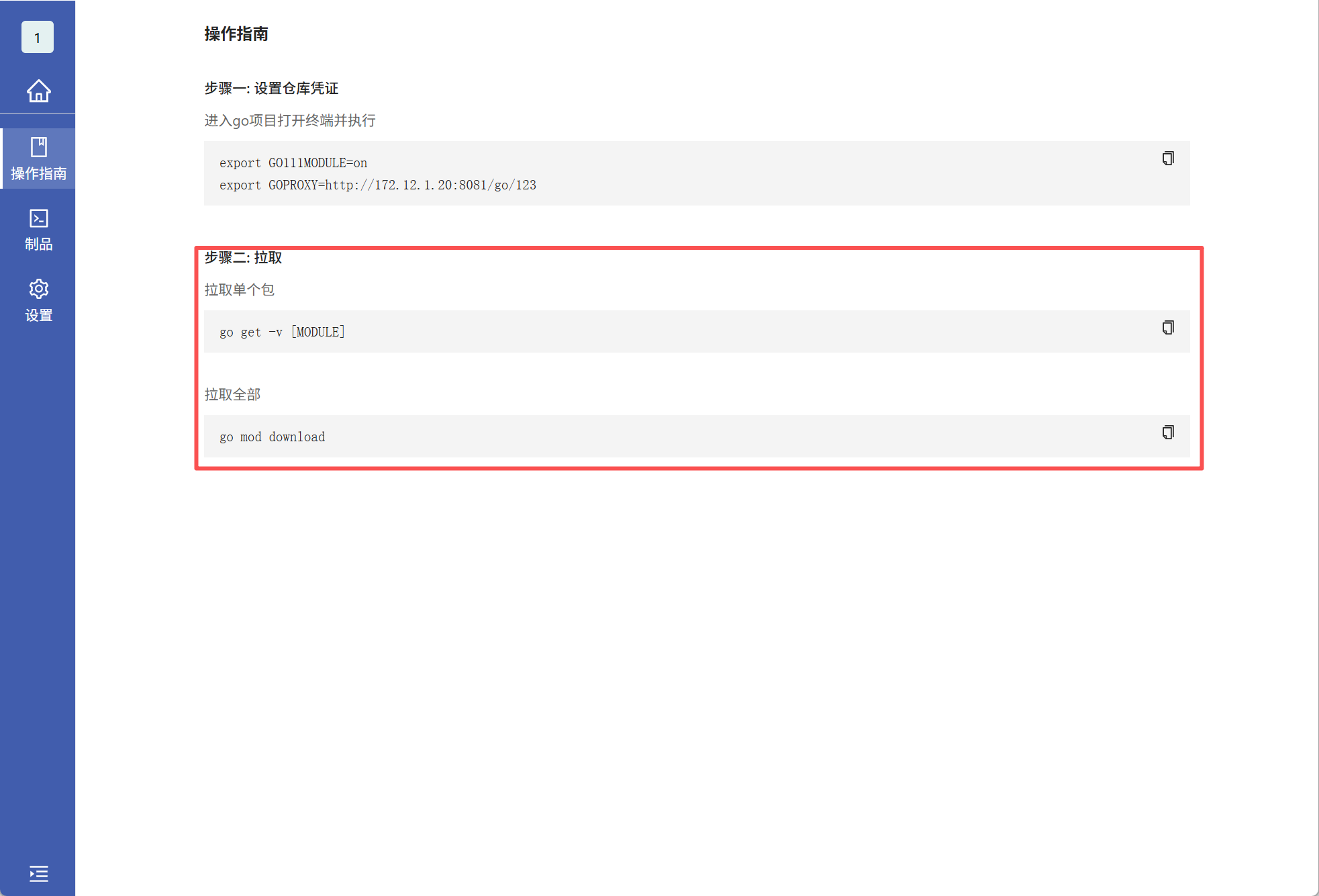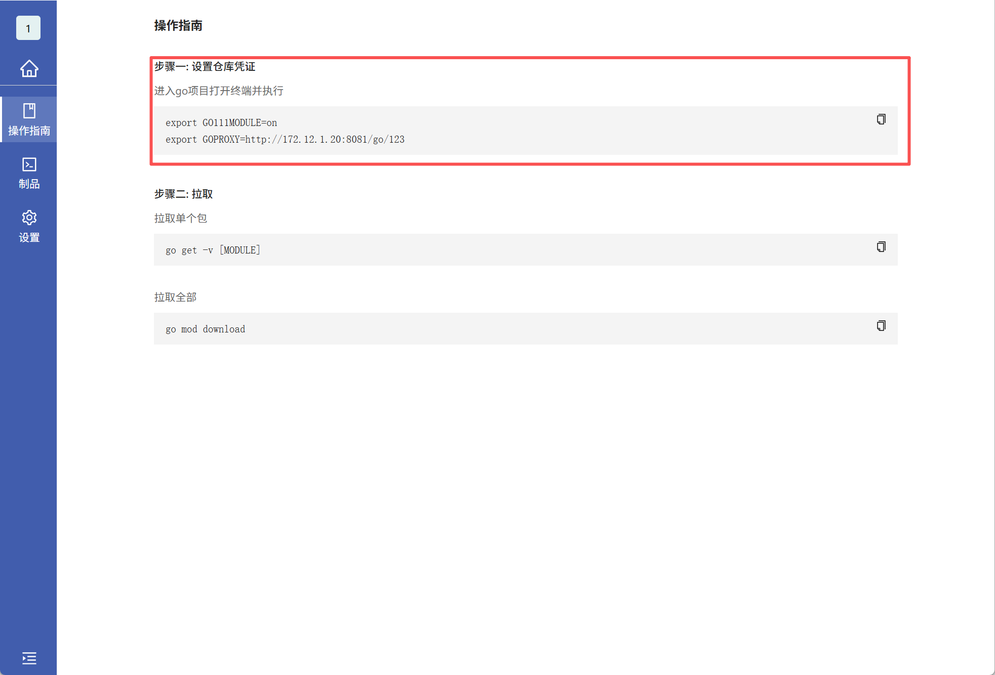 export GO111MODULE=on export GOPROXY=http://172.12.1.20:8081/go/123