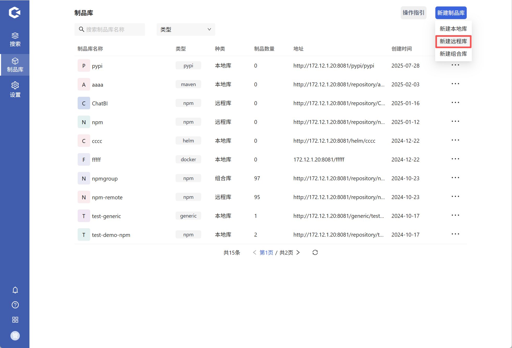 进入Hadess后点击制品库,可在上方选择制品类型或者直接在搜索框输入制品库名称进行查询