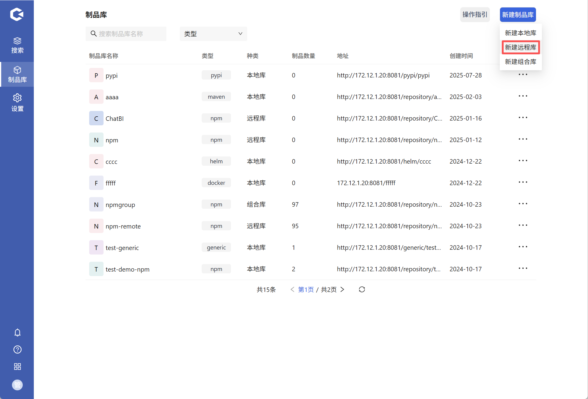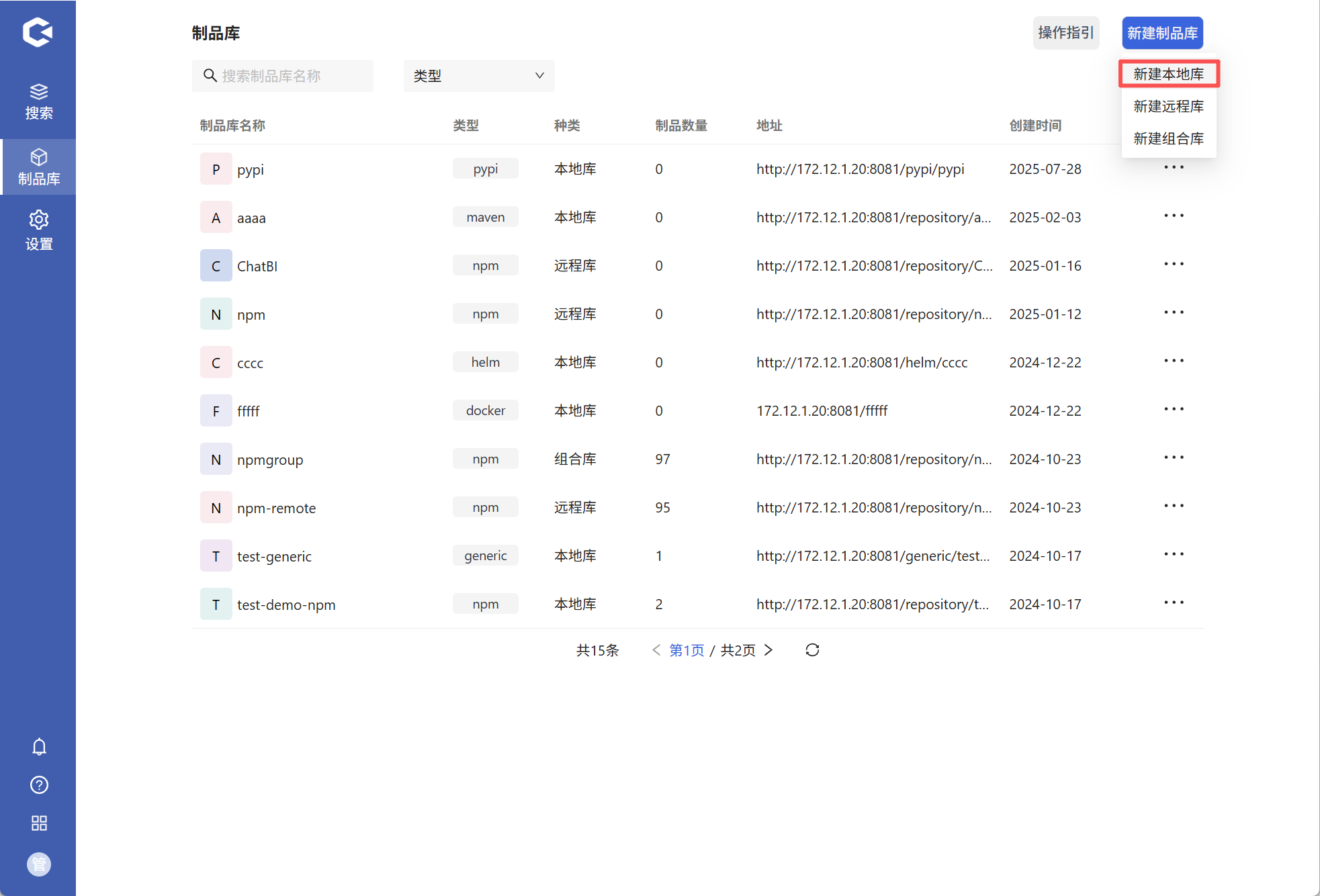 进入Hadess后,点击制品库可在上方选择制品类型或者输入制品库名称来进行查询