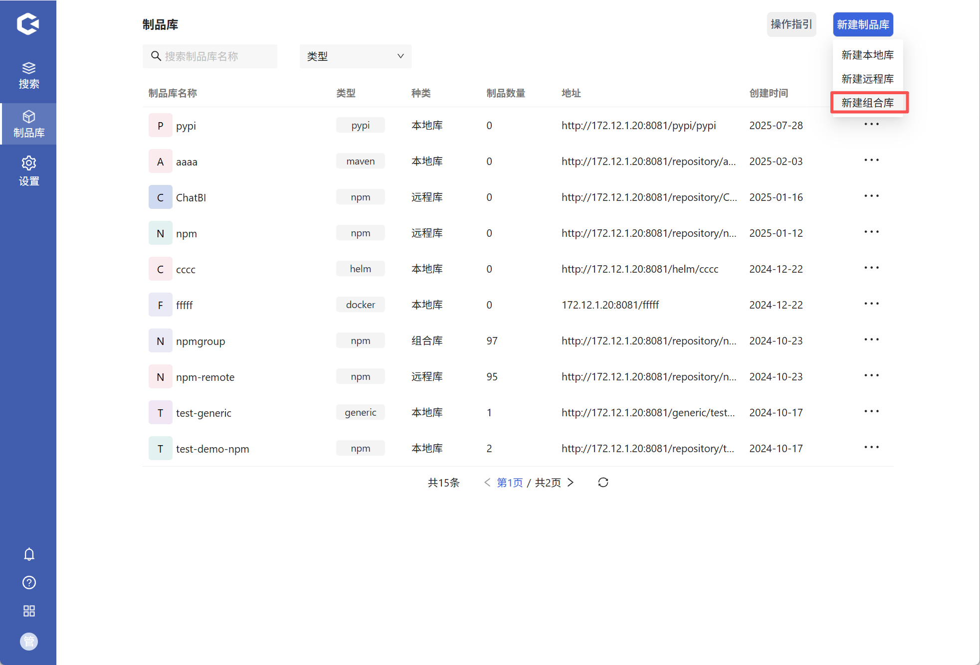 组合选择 | 是 | 关联同类型的本地或者远程库,最佳搭配:一个本地库和一个远程库 |