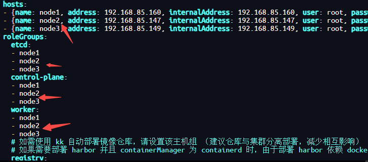 - {name: node3, address: 192.168.85.149, internalAddress: 192.168.85.149, user: root, password: "123456"}