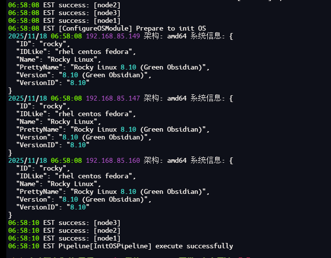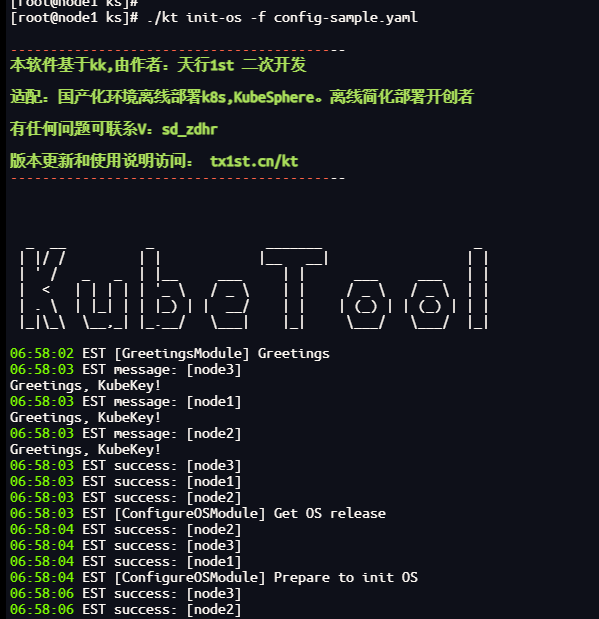 这里使用kt独有的一键初始化所有节点能力./kt init-os -f config-sample.yaml