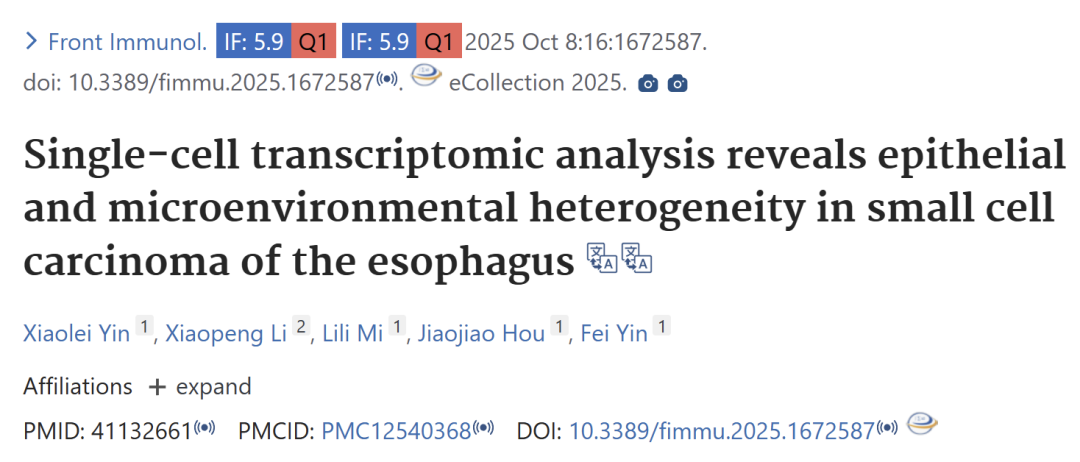 Single-cell transcriptomic analysis reveals epithelial and microenvironmental heterogeneity in small cell carcinoma of the esophagus 要想创新,得研究亚型啊,就只测了三个单细胞样本,加上两个公共数据集的分析,直接就干到一区了。