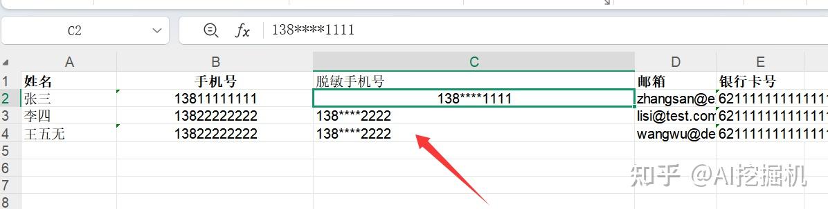 比如我们需要将手机号进行脱敏。 脱敏有两种方案, 函数法和快速填充法,最推荐使用 函数法,因为它最灵活、可批量处理且能随原始数据自动更新。