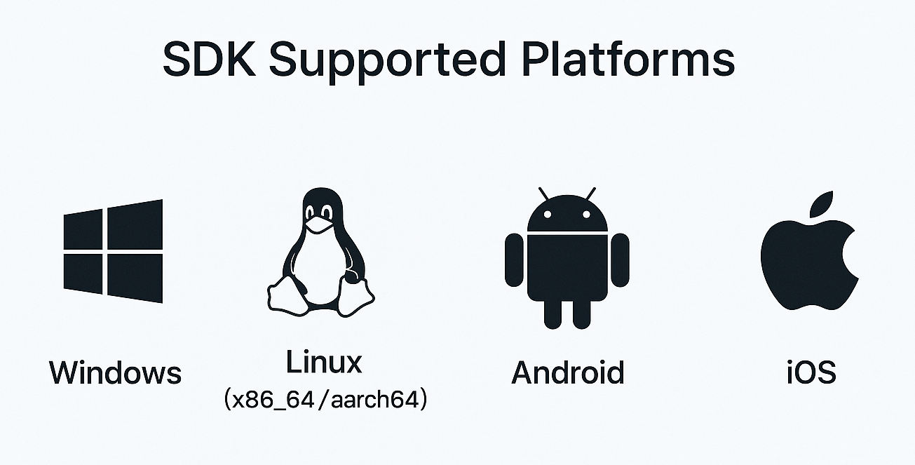 100–200 ms 可控低延迟、7×24 小时稳定运行、Windows/Linux/Android/iOS 全平台一致行为。