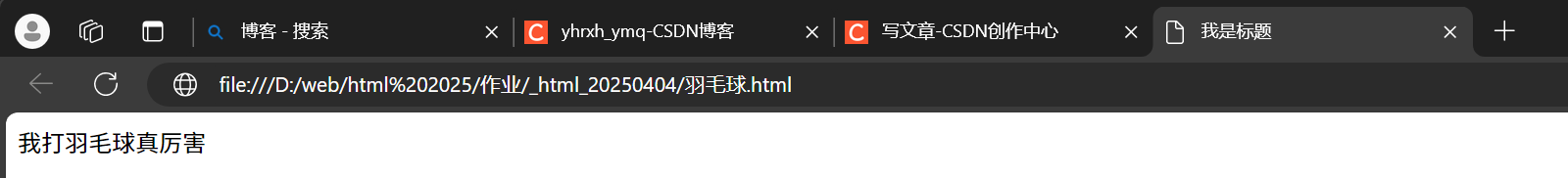 这里我们可以看到打开网页之后内容为“我打羽毛球真厉害”,这里就是<body></body>标签的作用