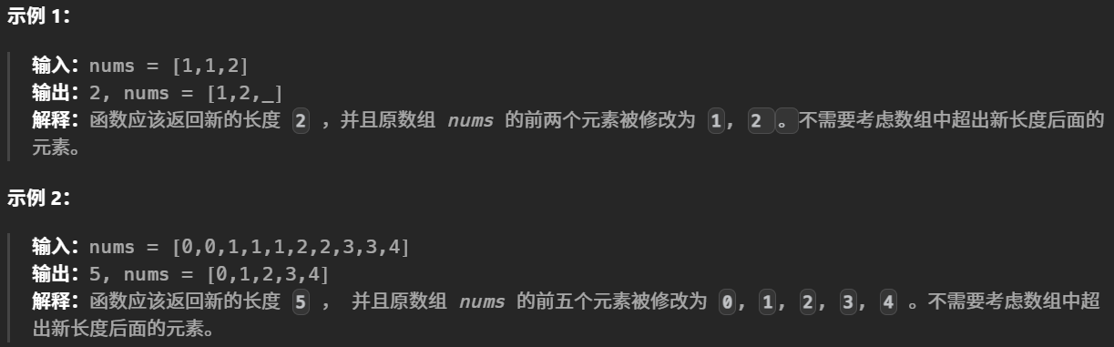 nums,请你 原地 删除重复出现的元素,使每个元素 只出现一次 ,返回删除后数组的新长度。元素的 相对顺序 应该保持 一致 。然后返回nums中唯一元素的个数。 考虑nums的唯一元素的数量为k,你需要做以下事情确保你的题解可以被通过: