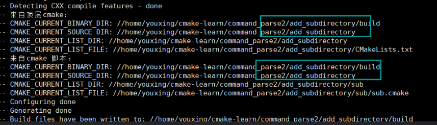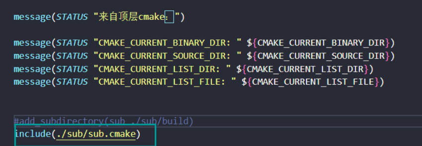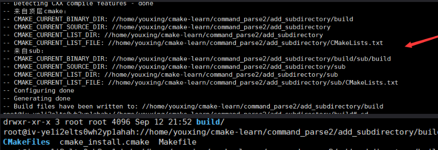 add_subdirectory 来添加一个需要独立构建的子项目(会改变源和构建目录)。include 来插入并执行一段通用的配置脚本(不改变源和构建目录,只改变当前执行的文件上下文)。CMAKE_BINARY_DIR;这个无论在这俩哪里都是基于顶层cmakeLists.txt为基准构建的。==下面验证下:==