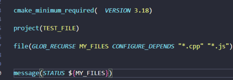 file(GLOB_RECURSE <out_var> [CONFIGURE_DEPENDS] <pattern1> [<pattern2> ...])<out_var>:必需。用于存储匹配结果的文件列表变量(如 MY_FILES)。<pattern>:必需。通配符表达式(如 *.cpp, src/**/*.h)。** 表示递归任何子目录。[CONFIGURE_DEPENDS]:可选。推荐添加。让 CMake 在每次构建时重新检查文件列表是否有变化(如新增文件),从而自动重新运行配置,避免因文件系统变动导致构建过期。GLOB。因为如果漏掉新文件,CMake 不会自动检测到(除非加 CONFIGURE_DEPENDS),可能导致构建错误。一句话: file(GLOB) 是一个方便的“文件收集器”,但需谨慎使用,添加 CONFIGURE_DEPENDS 选项可提升其可靠性。