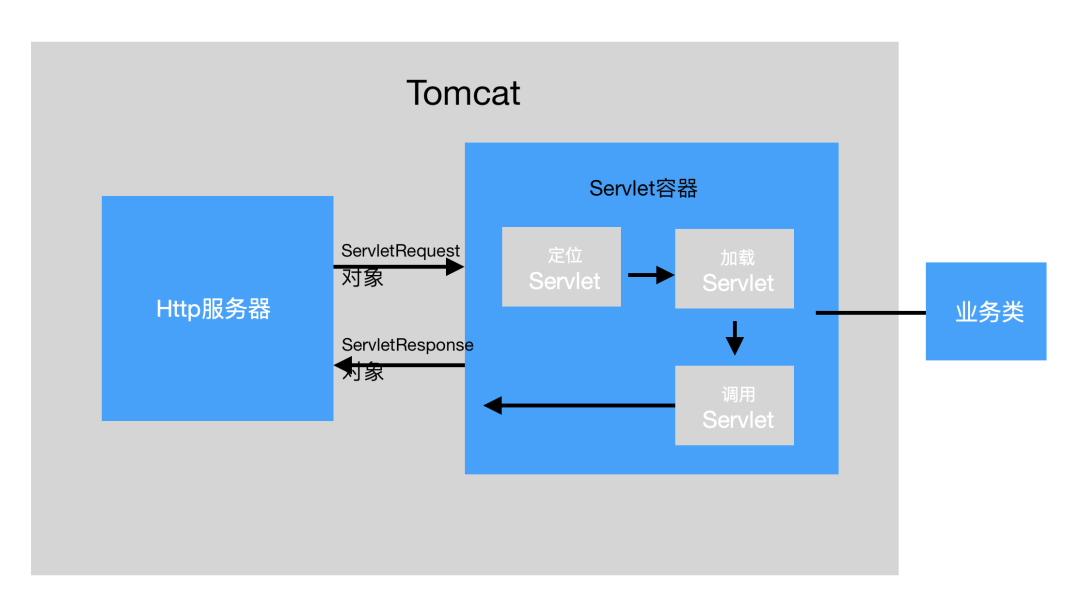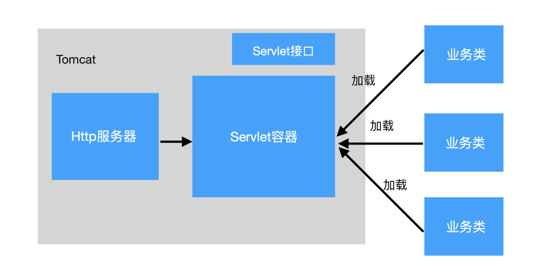 HTTP服务器接收到请求之后把请求交给Servlet容器来处理,Servlet容器通过Servlet接口调用业务 类。Servlet接口和Servlet容器这一整套内容叫作Servlet规范。