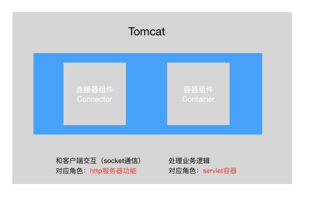socket通信,将字节流和Request/Response等对象进行转换;Servlet容器处理业务逻辑。