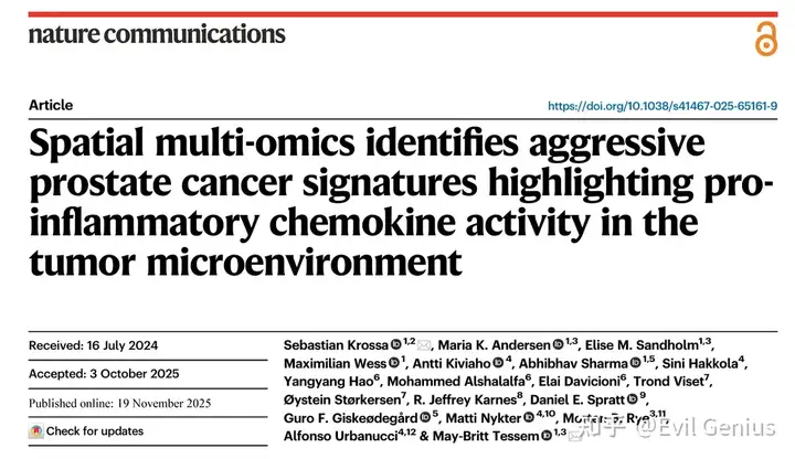 文献分享--空间多组学技术揭示侵袭性前列腺癌特征:肿瘤微环境中促炎性趋化因子活性的关键作用