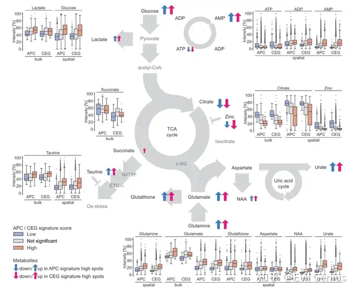 结果4、空间代谢组学和bulk代谢组学数据,揭示了APC和CEG分子特征活性与前列腺组织代谢重编程的直接关联