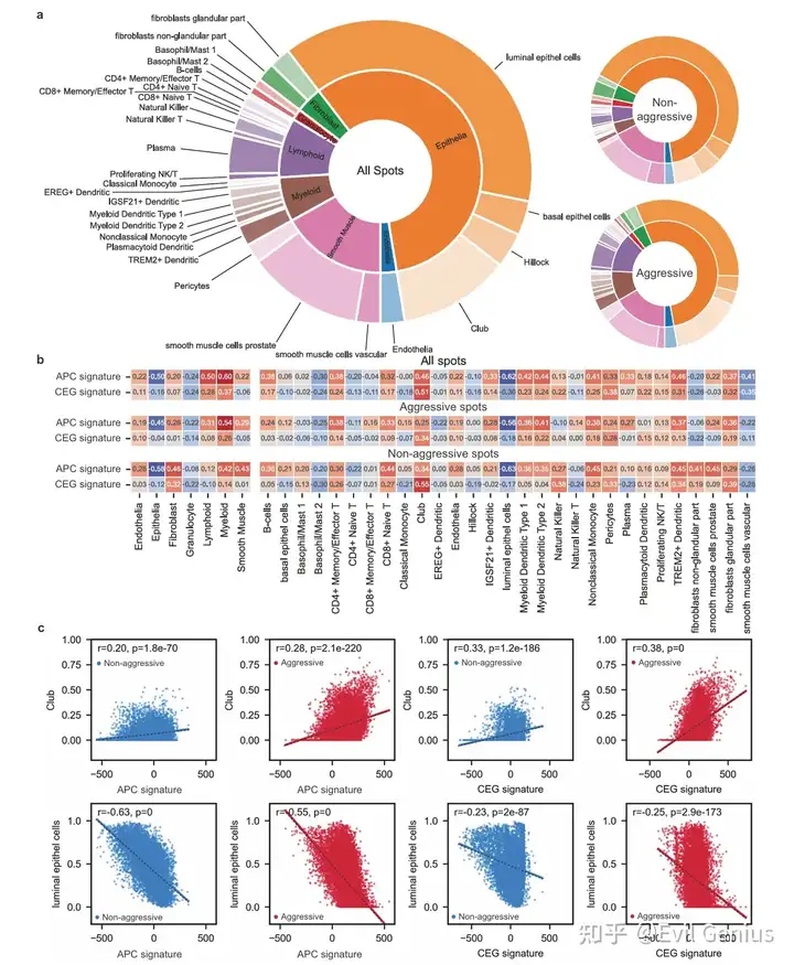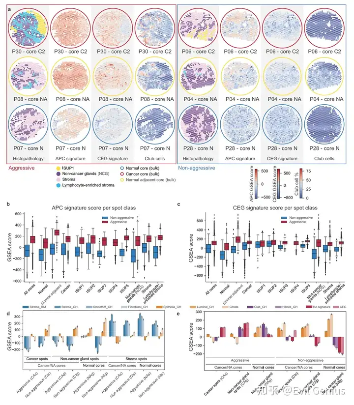重要发现:这种腺体功能特征的丢失,甚至在远离癌组织的、"正常"区域的腺体中也能观察到,提示侵袭性前列腺癌的微环境的影响范围很广。
