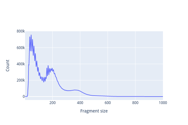大片段:可能会观察到一些大于500碱基对的大片段。这些片段可能来源于开放染色质的较长延伸区域或技术性伪影。