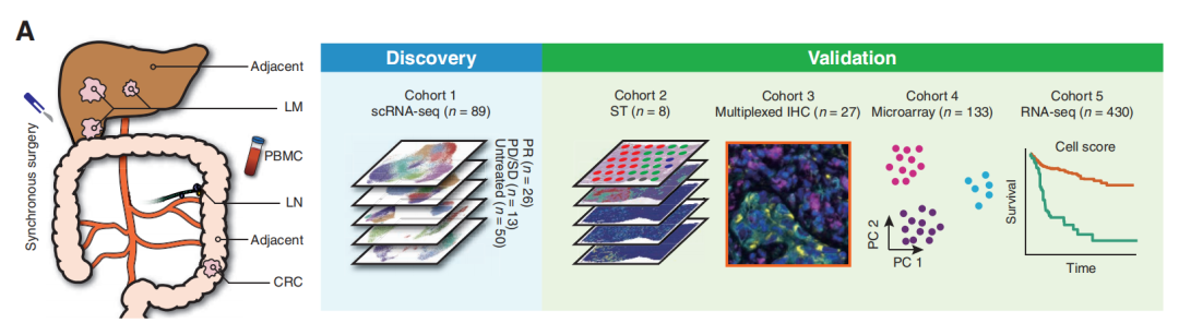 今天分享一个来自2022年发表在Cancer Discov杂志(IF=30+)上的空间转录组数据分析,看看多样本分析策略吧。文献标题为《Spatiotemporal Immune Landscape of Colorectal Cancer Liver Metastasis at Single-Cell Level》。